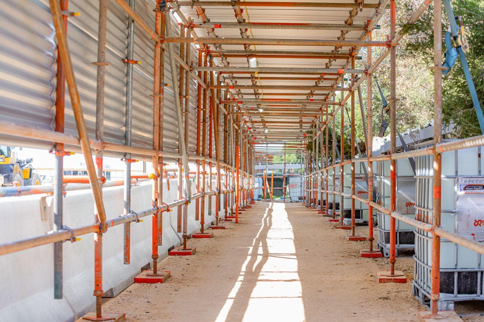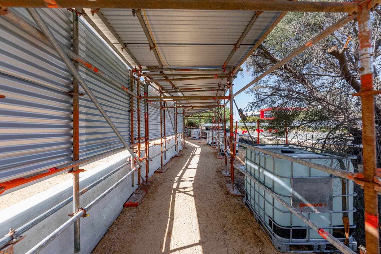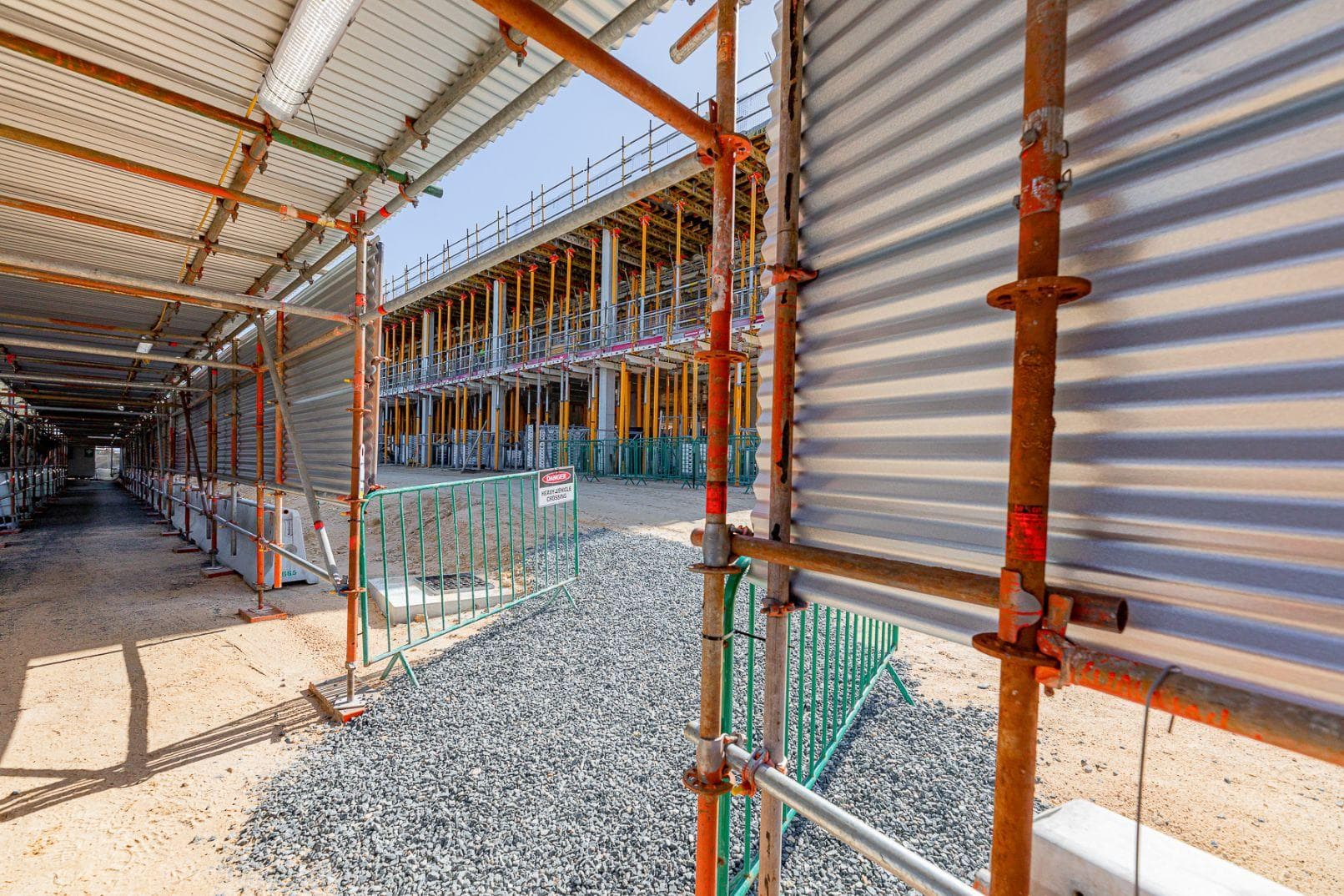 Construction of two KPA Layher FW footbridge spanning 21.22 m over live public traffic, fully sheeted with the bridge section assembled offsite in Paragon’s Wattleup facility, then transported via extendable drop deck trailer and craned into position on nightshift. Twenty months later we completed the reverse and dismantled the structure offsite, which minimised disruptions to site and surrounding stakeholders.